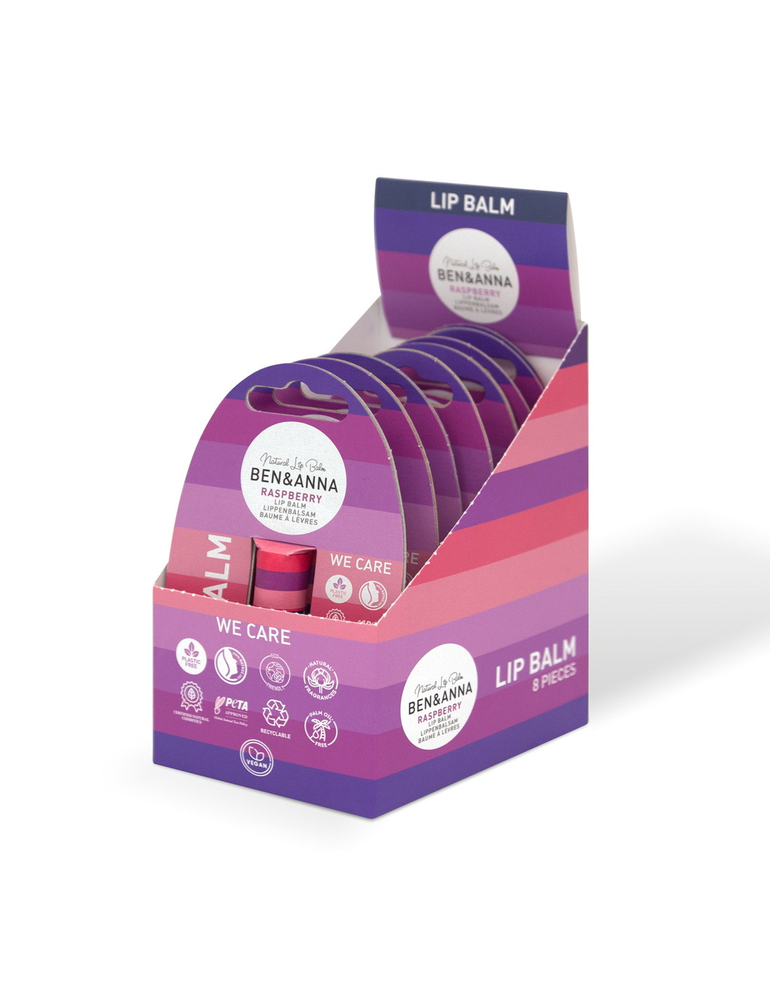 Descubra nuestros bálsamos labiales perfumados celestiales, ricos en aceites naturales, veganos, libres de crueldad animal y respetuosos con el medio ambiente. ¡Tus labios se merecen lo mejor! El bálsamo labial Ben&Anna viene naturalmente en un envase 100% libre de plástico. Es muy fácil de usar: puedes empujar suavemente el producto hacia arriba y luego usarlo como bálsamo labial como de costumbre. Para cerrar, simplemente coloque la tapa.