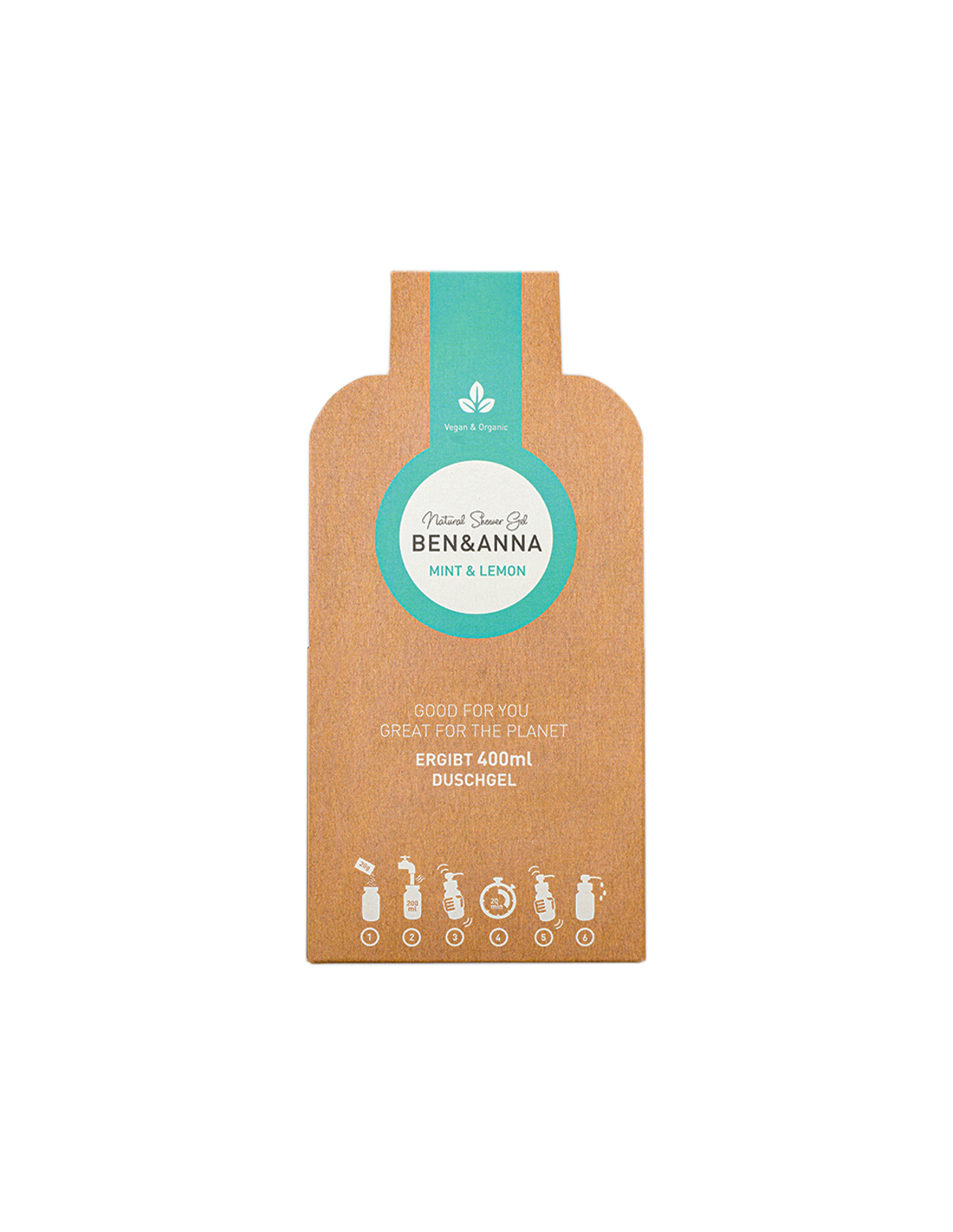 Es así de simple: llena un paquete de escamas de gel de ducha y 200 ml de agua tibia en el dispensador de gel de ducha. Agitar enérgicamente y pasados 20 minutos.